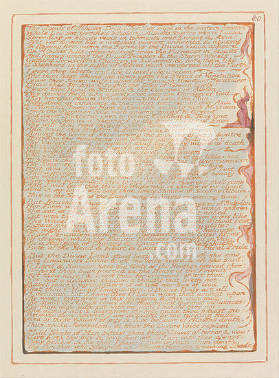 alb3892809 Jerusalem, Plate 60, "The clouds of Albions Druid Temples....". Date/Period: 1804 to 1820. Print. Orange print, pen, black ink and watercolor on cream-colored paper (Relief etching printed in orange with pen and black ink and watercolor on moderately thick, smooth, cream wove paper). Height: 212 mm (8.34 in); Width: 149 mm (5.86 in). Author: William Blake.