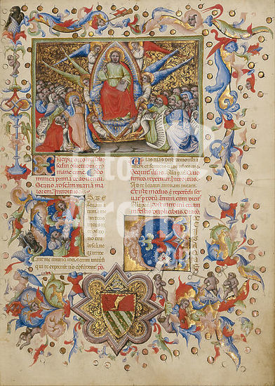 alb3893534 Christ in Majesty; Initial A: A Man Lifting His Soul to God. Date/Period: Between 1389 and 1404. Folio. Tempera colors, gold leaf, gold paint, and ink on parchment. Height: 330 mm (12.99 in); Width: 240 mm (9.44 in). Author: Master of the Brussels Initials.