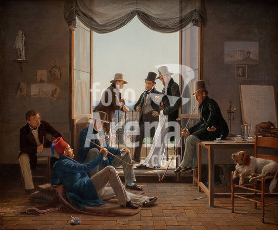 alb3894790 A Group of Danish Artists in Rome. Date/Period: 1837. Painting. Oil on canvas. Height: 620 mm (24.40 in); Width: 740 mm (29.13 in). Author: CONSTANTIN HANSEN.