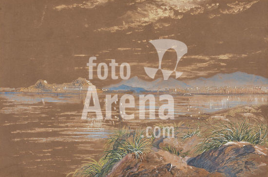 alb3896157 Corfu. Date/Period: Ca. 1856. Landscape. Watercolor, pen in brown ink, over graphite, with gouache, and pastels on medium, moderately textured, beige wove paper mounted on very thick cardboard. Height: 314 mm (12.36 in); Width: 473 mm (18.62 in). Author: Edward Lear.