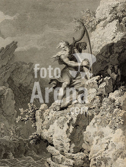 alb17167115 Welsh Druid playing the harp. Museum: PRIVATE COLLECTION. Author: ANONYMOUS.