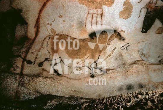 akg066791 Lascaux (Dordogne, France), Cave, place of worship a. living, fr. th. later Palaeolithic Age (c. 15000 BC). Cave painting: horse. Photo. Author: ANONYMOUS.