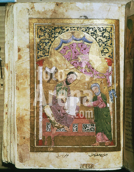 akg3921771 Buchmalerei, koptisch, 1. Viertel des 13. Jahrhundert. - Der Evangelist Markus. - Frontispiz zum Evangelium nach Markus. Aus einem Evangeliar. Handschrift, Blattformat 25 x 17 cm. Auf Papier. Folio 65 verso. Paris, Institut Catholique de Paris. Museum: Paris, Institut Catholique de Paris. Author: ANONYMOUS.