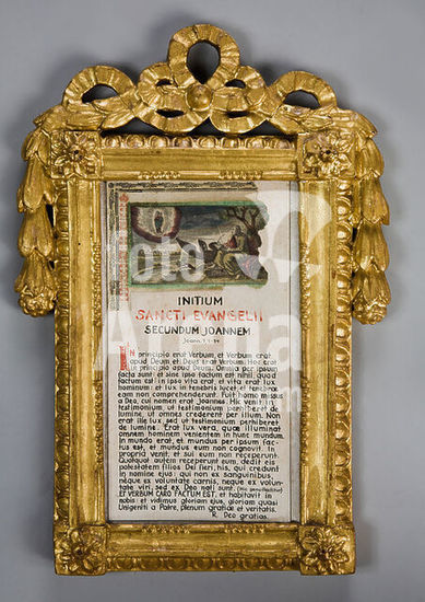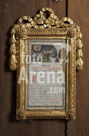 akg6177865 Print, Augsburg (Joseph Anton Huber), 18th century. - Beginning of the Gospel of John. - Type printing and engraving. In a picture frame, around 1770/90, wood, carved and gilded. From the Wittichen Poor Clares Monastery, secularized in 1803. Wittichen (Kaltbrunn, Schenkenzell, Baden-Württemberg, Germany), Wittichen Monastery, Museum. Author: ANONYMOUS.