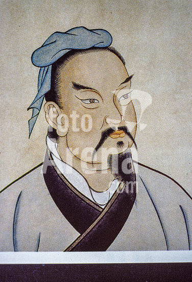 akg8222576 Sun Tzu, Chinese general, military strategist and philosopher of the time of Spring and Autumn Annals, author of the book Sunzi Bingfa (The Art of War), Qi around 544 BC - Wu around 496 BC Chr. - Portrait. - Chinese painting. Author: ANONYMOUS.
