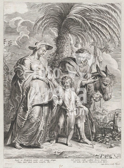 alb3631574 The Return from Egypt. Artist: Anonymous; After Peter Paul Rubens (Flemish, Siegen 1577-1640 Antwerp); After Lucas Vorsterman I (Flemish, Zaltbommel 1595-1675 Antwerp). Dimensions: Sheet (Trimmed): 16 9/16 × 11 7/8 in. (42.1 × 30.1 cm). Publisher: Gaspar Huberti (Flemish, 1685-1724). Date: ca. 1705-24. Museum: Metropolitan Museum of Art, New York, USA.