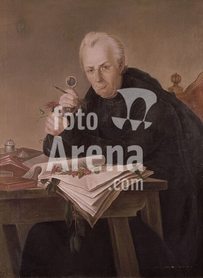 orz003693 JOSE CELESTINO MUTIS (1732/1808) - SPANISH DOCTOR AND BOTANICAL SCIENTIST - DIRECTOR OF BOTANICAL EXPEDITION OF NUEVA GRANADA - PAINTING, 1887. Author: ANONYMOUS. Location: JARDIN BOTANICO-PINTURA. MADRID. SPAIN. JOSE CELESTINO MUTIS (1732-1808).