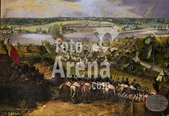 orz004302 Capture of Maastricht by Alejandro Farnesio in 1579. Monastery of San Lorenzo del Escorial . Madrid. Author: ANONYMOUS. Location: MONASTERIO-PINTURA. SAN LORENZO DEL ESCORIAL. MADRID. SPAIN. ALEJANDRO FARNESIO (1545-1592) DUQUE DE PARMA.