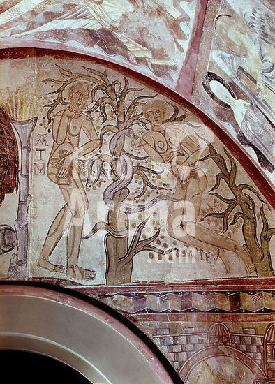 orz007732 Portrait from Maderuelo . Adam and Eve in Paradise. 12th century. Madrid, El Prado. Author: ANONYMOUS. Location: MUSEO DEL PRADO-PINTURA. MADRID. SPAIN.