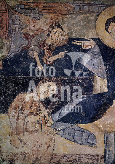 orz024483 ANUNCIACION - PINTURA MURAL DE LA ERMITA DE LA VERA CRUZ DE MADERUELO - SIGLO XII - ROMANICO ESPAÑOL. Author: ANONYMOUS. Location: MUSEO DEL PRADO-PINTURA. MADRID. SPAIN. ARCHANGEL GABRIEL. VIRGIN MARY.