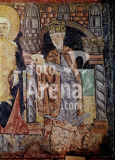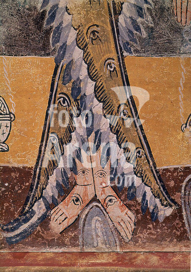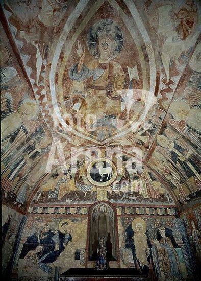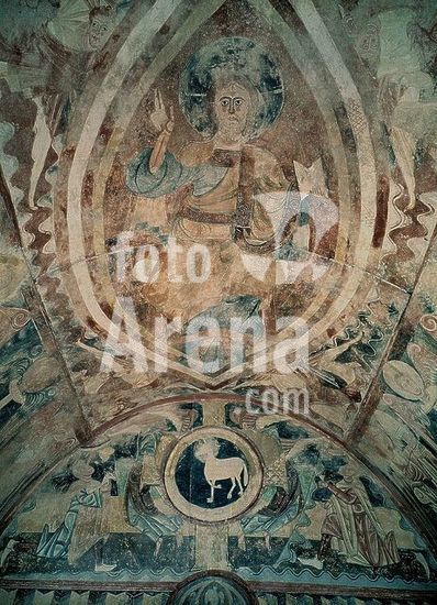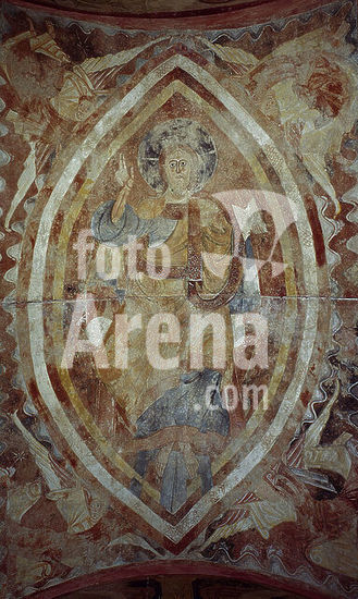orz034586 PANTOCRATOR - PINTURA MURAL DE LA ERMITA DE LA VERA CRUZ DE MADERUELO - SIGLO XII - ROMANICO ESPAÑOL. Author: ANONYMOUS. Location: MUSEO DEL PRADO-PINTURA. MADRID. SPAIN. JESUS. ABEL. CAIN. CRISTO JUEZ. CRISTO EN MAJESTAD. PADRE ETERNO. DIOS.