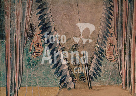 orz024486 DETALLE DEL ANGEL TURIFERARIO - PINTURA MURAL DE LA ERMITA DE LA VERA CRUZ DE MADERUELO - SIGLO XII - ROMANICO ESPAÑOL. Author: ANONYMOUS. Location: MUSEO DEL PRADO-PINTURA. MADRID. SPAIN.