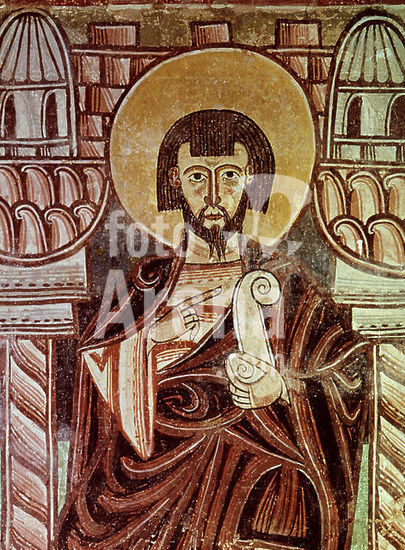 orz024487 APOSTOL - DETALLE DEL PANEL IZQUIERDO - PINTURA MURAL DE LA ERMITA DE LA VERA CRUZ DE MADERUELO - SIGLO XII - ROMANICO ESPAÑOL. Author: ANONYMOUS. Location: MUSEO DEL PRADO-PINTURA. MADRID. SPAIN.