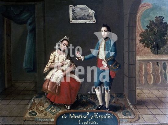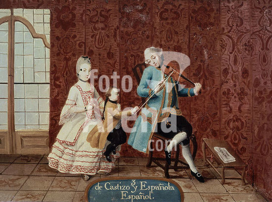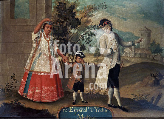 orz034403 Mixity: Of Spain and India. 18th century. Copperplate painting (48 x 36 cm). Madrid, museum of America. Author: ANONYMOUS. Location: MUSEO DE AMERICA-COLECCION. MADRID. SPAIN.