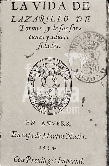 orz029298 PORTADA DE LA VIDA DEL LAZARILLO DE TORMES EDITADA EN AMBERES EN 1554 - NOVELA PICARESCA - RENACIMIENTO ESPAÑOL. Author: ANONYMOUS. Location: BIBLIOTECA NACIONAL-COLECCION. MADRID. SPAIN.