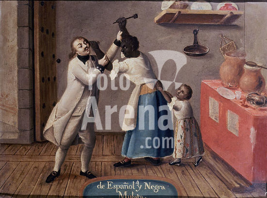 orz034402 MESTIZAJE - DE ESPANOL Y NEGRA : MULATO - PINTURA SOBRE COBRE - 48x36 - SIGLO XVIII. Author: ANONYMOUS. Location: MUSEO DE AMERICA-COLECCION. MADRID. SPAIN.