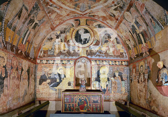 orz034585 PINTURA MURAL DE LA ERMITA DE LA VERA CRUZ DE MADERUELO - SIGLO XII - EN PRIMER TERMINO FRONTAL DE GUILS - ROMANICO ESPAÑOL. Author: ANONYMOUS. Location: MUSEO DEL PRADO-PINTURA. MADRID. SPAIN.