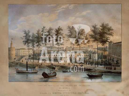 orz056999 EL PASEO DE CRISTINA DESDE EL RIO GUADALQUIVIR DE SEVILLA - 1833 - CROMOLITOGRAFIA. Author: ANONYMOUS. Location: PALACIO REAL-BIBLIOTECA. MADRID. SPAIN.