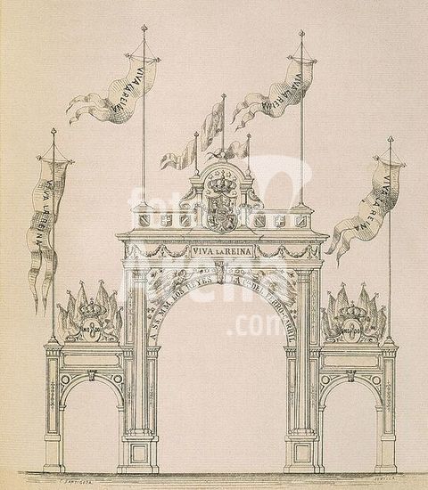 orz057010 VISITA DE ISABEL II A SEVILLA 1862 - DECORACION DEL AYUNTAMIENTO. Author: ANONYMOUS. Location: PRIVATE COLLECTION. Sevilla. Seville. SPAIN. ISABEL II REINA DE ESPAÑA (1830-1904).
