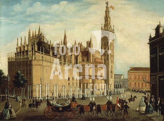 orz057011 VISITA DE ISABEL II A SEVILLA 1862 - LOS REYES VAN A LA CATEDRAL. Author: ANONYMOUS. Location: PRIVATE COLLECTION. Sevilla. Seville. SPAIN. ISABEL II REINA DE ESPAÑA (1830-1904). FRANCISCO DE ASIS (1822-1902).