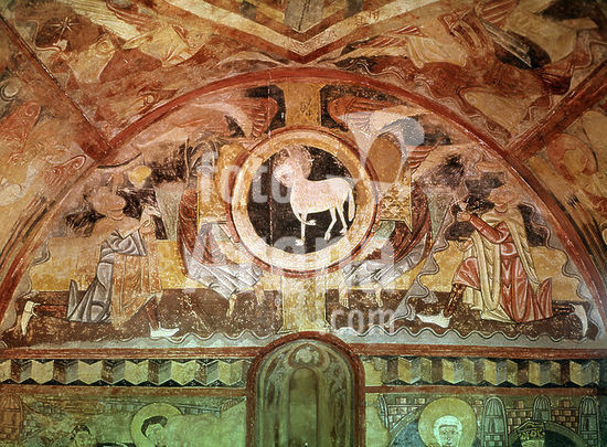 orz068302 AGNUS DEI - PINTURA MURAL DE LA ERMITA DE LA VERA CRUZ DE MADERUELO - SIGLO XII - ROMANICO ESPAÑOL. Author: ANONYMOUS. Location: MUSEO DEL PRADO-PINTURA. MADRID. SPAIN. ABEL. CAIN.