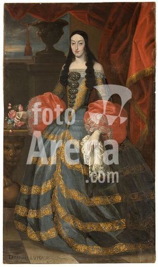 alb11631179 Anonymous / 'Queen Marie Louise of Orléans holding Roses in her right Hand'. 1650 - 1700. Oil on canvas. Museum: Museo del Prado, Madrid, España.