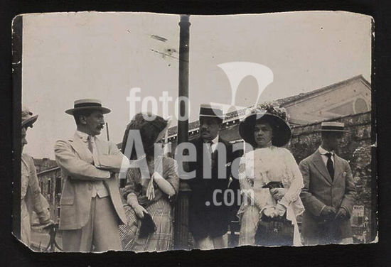alb3376172 Léon Bakst (left) and Sergei Diaghilev (center) with unidentified others. Museum: PRIVATE COLLECTION. Author: ANONYMOUS.
