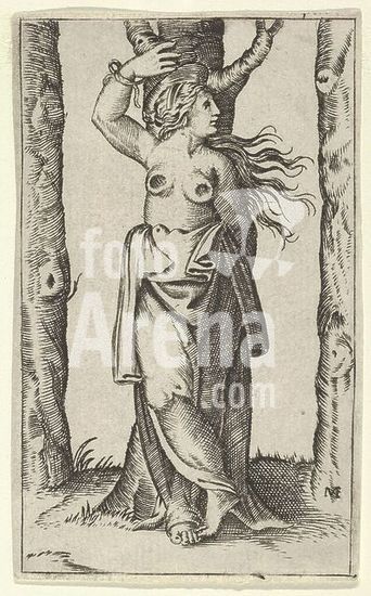 alb3640929 Saint Agatha tied to a tree, her breasts have been cut off, from the series 'Piccoli Santi' (Small Saints). Artist: Anonymous; After Marcantonio Raimondi (Italian, Argini (?) ca. 1480-before 1534 Bologna (?)). Dimensions: 3-1/4 x 1-7/8 in. (8.3 x 4.8 cm). Date: ca. 1500-1540. Museum: Metropolitan Museum of Art, New York, USA.