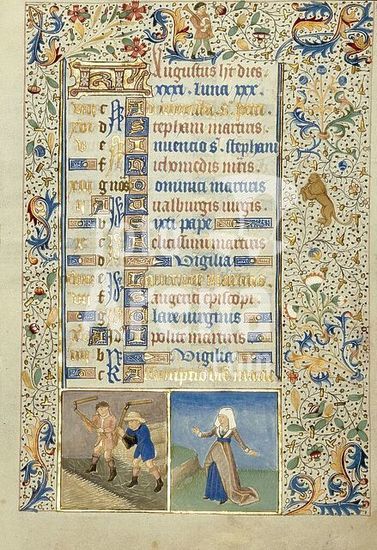 alb3596037 Calendar from a Book of Hours. August, Threshing Corn. Museum: PRIVATE COLLECTION. Author: ANONYMOUS.