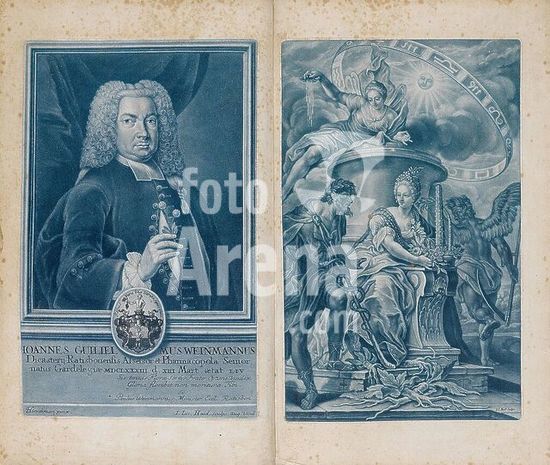 alb3597716 Portrait of Wilhelm Weinmann (1683-1741) with Frontispiece of "Phytanthoza-Iconographia". Museum: PRIVATE COLLECTION. Author: ANONYMOUS.