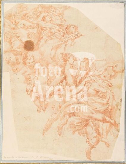 alb3787092 Anonymous (Copy Correggio (Antonio Allegri)) / 'Angels, Prophets and Saints in Heavenly Glory'. 1701 - 1750. Pencil ground, Red chalk on dark yellow paper. Museum: Museo del Prado, Madrid, España.