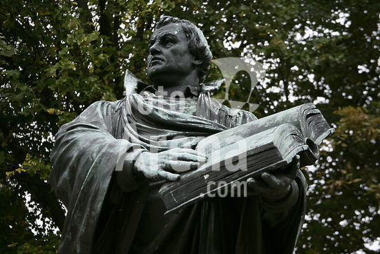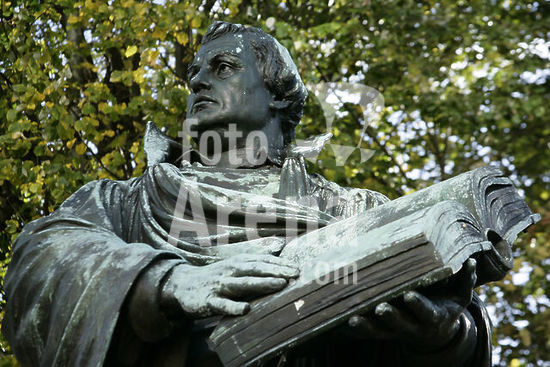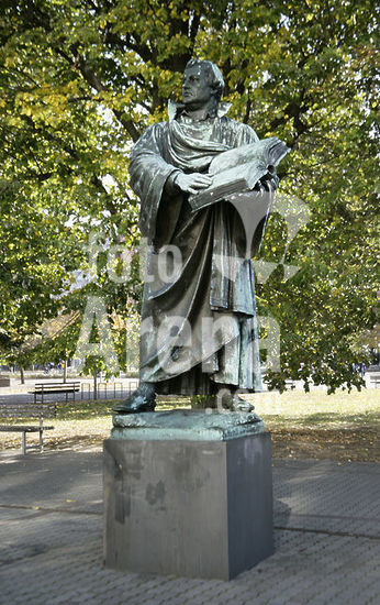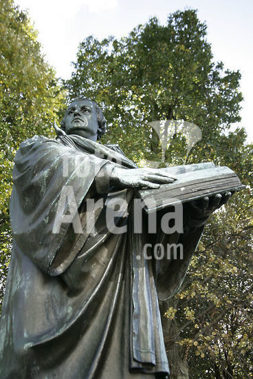 alb18694732 Martin Luther (1483-1546). German theologian and Augustinian friar. Statue of Martin Luther next to the Marienkirche (St. Mary's Church) in Berlin, Germany. It was created by Paul Martin Otto (1846-1893) and Robert Toberentz (1849-1895) in 1895. Luther is depicted holding an open Bible, touching one of its pages. It was originally the central figure of a large monument which was destroyed in 1945. Bronze. Author: Paul Martin Otto (1846-1893). German sculptor. Robert Toberentz (1849-1895). German sculptor.