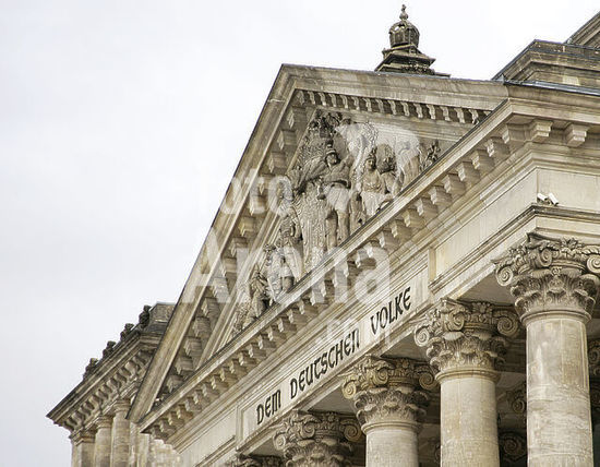 alb18694753 Berlin, Germany. Reichstag Building. Seat of the German Bundestag (national parliament of the Federal Republic of Germany). Built between 1884 and 1894 by Paul Wallot. Main façade. Pediment and inscription "Dem Deutschen Volke" (To the German People), added in 1916.