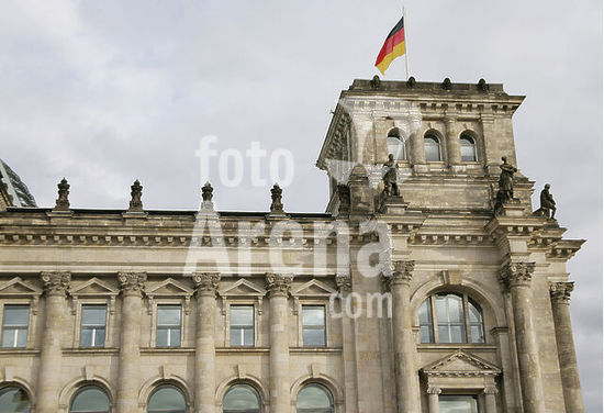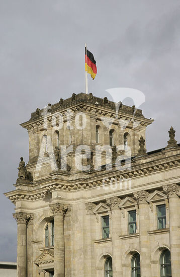alb18694757 Berlin, Germany. Reichstag Building. Seat of the German Bundestag (national parliament of the Federal Republic of Germany). Built between 1884 and 1894 by Paul Wallot. It was renovated between 1994 and 1999 under the direction of British architect Sir Norman Foster (b. 1935). Architectural detail of the exterior.