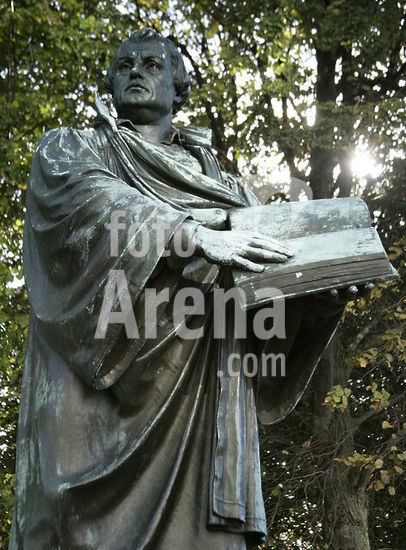 alb18694748 Martin Luther (1483-1546). German theologian and Augustinian friar. Statue of Martin Luther next to the Marienkirche (St. Mary's Church) in Berlin, Germany. It was created by Paul Martin Otto (1846-1893) and Robert Toberentz (1849-1895) in 1895. Luther is depicted holding an open Bible, touching one of its pages. It was originally the central figure of a large monument which was destroyed in 1945. Bronze. Detail. Author: Paul Martin Otto (1846-1893). German sculptor. Robert Toberentz (1849-1895). German sculptor.