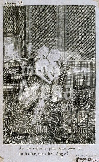 alb18702193 Now I only breathe for you. A kiss, my beautiful angel. 1789-1799. Caricatures of various figures (Continued). (Title of the series). Anonymous engraver. Height: 18 cm. Width: 11.3 cm. Carnavalet Museum, Paris.