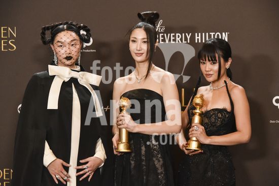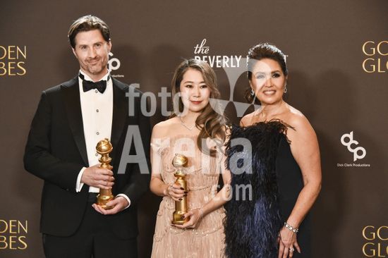 2611J10_UH021 Chris Appelhans, Maggie Kang, Michelle Wong in the press room for 83rd Annual Golden Globes - Photo Room, Beverly Hilton Hotel, Beverly Hills, CA, January 11, 2026. Photo By: Elizabeth Goodenough/Everett Collection/ Fotoarena