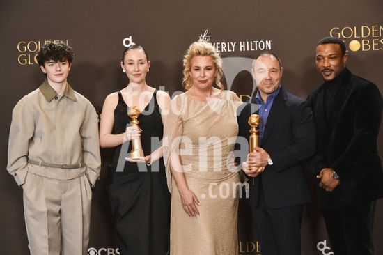 2611J10_UH023 Erin Doherty, Owen Cooper, Stephen Graham, Jack Thorne, Jeremy Kleiner, Philip Barantini, Ashley Walters, Mark Herbert, Hannah Walters in the press room for 83rd Annual Golden Globes - Photo Room, Beverly Hilton Hotel, Beverly Hills, CA, January 11, 2026. Photo By: Elizabeth Goodenough/Everett Collection/ Fotoarena