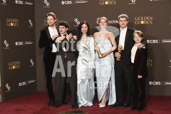 2611J10_UH036 Joe Alwyn, Jessie Buckley, Chloé Zhao, Jacobi Jupe, Noah Jupe, Paul Mescal in the press room for 83rd Annual Golden Globes - Photo Room, Beverly Hilton Hotel, Beverly Hills, CA, January 11, 2026. Photo By: Elizabeth Goodenough/Everett Collection/ Fotoarena