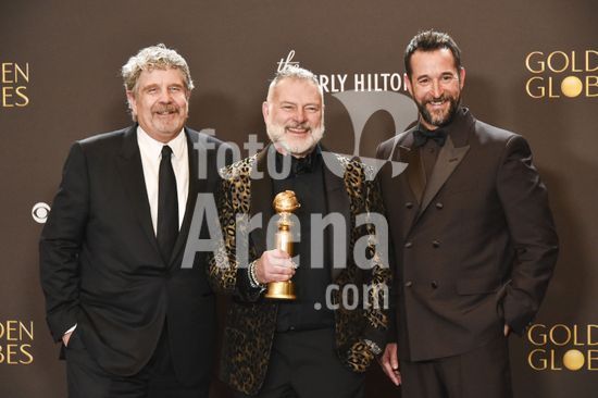 2611J10_UH047 John Wells, Noah Wyle, R. Scott Gemmill in the press room for 83rd Annual Golden Globes - Photo Room, Beverly Hilton Hotel, Beverly Hills, CA, January 11, 2026. Photo By: Elizabeth Goodenough/Everett Collection/ Fotoarena