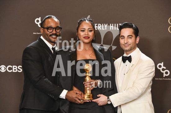 2611J10_UH073 Ryan Coogler, Zinzi Coogler, Sev Ohanian in the press room for 83rd Annual Golden Globes - Photo Room, Beverly Hilton Hotel, Beverly Hills, CA, January 11, 2026. Photo By: Elizabeth Goodenough/Everett Collection/ Fotoarena