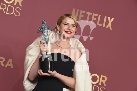 2601H10_UH081 Jessie Buckley in the press room for The 32nd Annual Screen Actors Guild SAG Awards - Press Room, Shrine Auditorium and Expo Hall, Los Angeles, CA, March 01, 2026. Photo By: Elizabeth Goodenough/Everett Collection/ Fotoarena