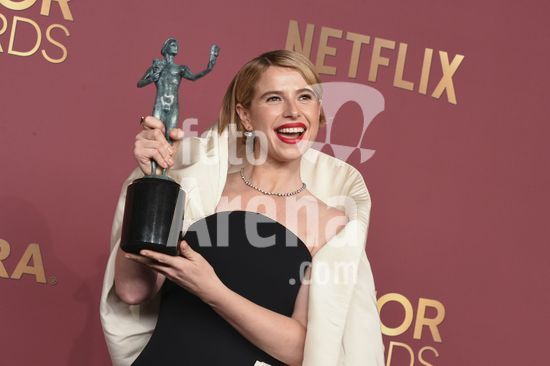 2601H10_UH082 Jessie Buckley in the press room for The 32nd Annual Screen Actors Guild SAG Awards - Press Room, Shrine Auditorium and Expo Hall, Los Angeles, CA, March 01, 2026. Photo By: Elizabeth Goodenough/Everett Collection/ Fotoarena