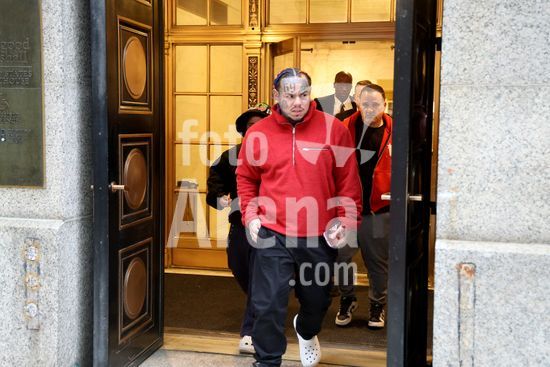 990_05_7-Crime-Trial_2HR Washington, D.C.: April 10, 1928. The jury members of the Teapot Dome Trial trying oilman Harry Sinclair for fraud are escorted by U.S. Marshals on their way to lunch to avoid another mistrial.The previous trial ended when Sinclair was accused of trying to bribe jury members.