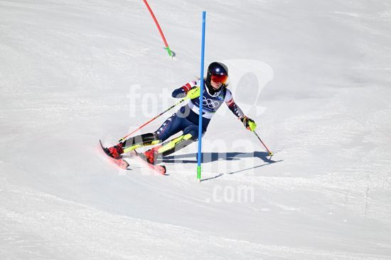 ny180226120913 Mikaela Shiffrin, of the United Sates, during the first run of the women's slalom competition at the 2026 Milan Cortina Winter Olympics in Cortina d'Ampezzo, Italy, Feb. 18, 2026. After a couple of disappointing races, Mikaela Shiffrin was down to one event on Wednesday in her bid to end her poor Olympic stretch. Luckily for her, it was her best event, the slalom, in which she has won nine World Cup titles, four world championships and an Olympic gold medal in 2014.(James Hill/The New York Times/Fotoarena)