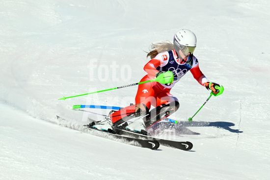 ny180226112110 Wendy Holdener, of Switzerland, during the first run of the women's slalom competition at the 2026 Milan Cortina Winter Olympics in Cortina d'Ampezzo, Italy, Feb. 18, 2026. (James Hill/The New York Times/Fotoarena)