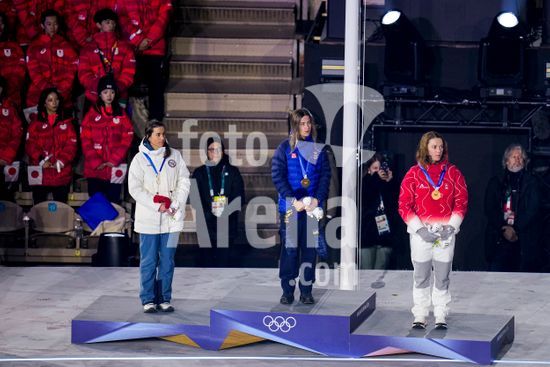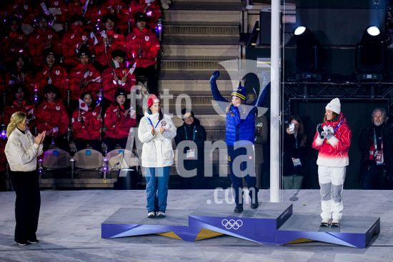 ny220226184912 From left, Heidi Weng of Norway, silver medalist, Ebba Andersson of Sweden, gold medalist, and Nadja Kaelin of Switzerland, bronze medalist, on the podium at a medal ceremony for the cross-country skiing women's 50km mass start classic during the closing ceremony of the 2026 Milan Cortina Winter Olympics at the Verona Arena in Verona, Italy, on Sunday, Feb. 22, 2026. (Vincent Alban/The New York Times/Fotoarena)