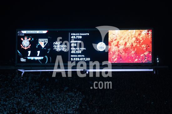 2845848 Público e renda da partida entre Corinthians e São Paulo, válida pela 34ª rodada do Brasileirão e realizada na noite desta quinta-feira (20) na Neo Química Arena, em São Paulo, SP.