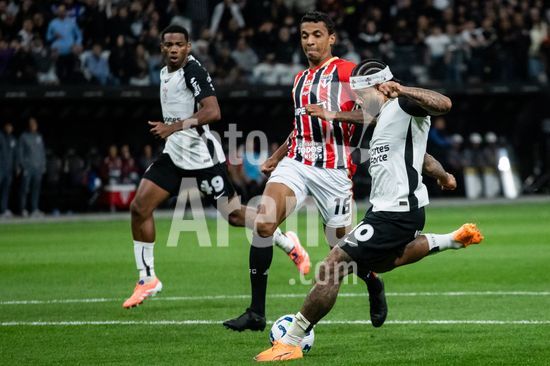 2845810 Pablo Maia do São Paulo e José Andrés Martínez do Corinthians disputam a bola, durante partida entre Corinthians x São Paulo FC, válida pela trigésima quarta rodada do Campeonato Brasileiro de Futebol 2025, nesta quinta feira (20), na Neo Química Arena, SP.