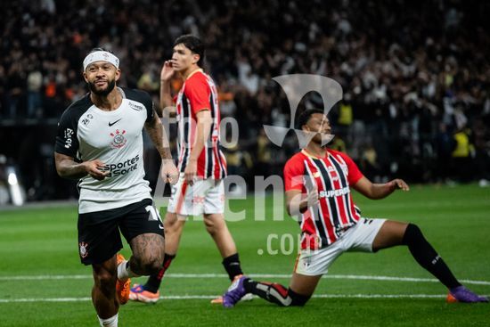 2845854 Memphis do Corinthians comemora o gol, durante partida entre Corinthians x São Paulo FC, válida pela trigésima quarta rodada do Campeonato Brasileiro de Futebol 2025, nesta quinta feira (20), na Neo Química Arena, SP.
